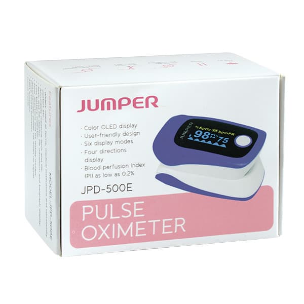 پالس اکسیمتر Jumper مدل 500E را میتوان یک انتخاب دقیق و مقرون به صرفه دونست، این اکسیژن سنج در کنار قیمت مناسب از کارایی بالایی برخوردارِ. نتایج سنجش اکسیژن خون به وسیله این دستگاه کاملا قابل اطمینان هست و با توجه به طول عمر بسیار بالای باتری، یک انتخاب بسیار کارآمد دراستفادههای خانگی هست.این پالس اکسیمتر برای سنجش سطح اکسیژن بزرگسالان طراحی شده . اکسیمتر جامپر مدل 500E قادرِ میزان SpO2 (سطح اشباع اکسیژن خون) و Pulse rate (ریتم طبیعی قلب) را یا دقت %2± به نمایش میزاره.